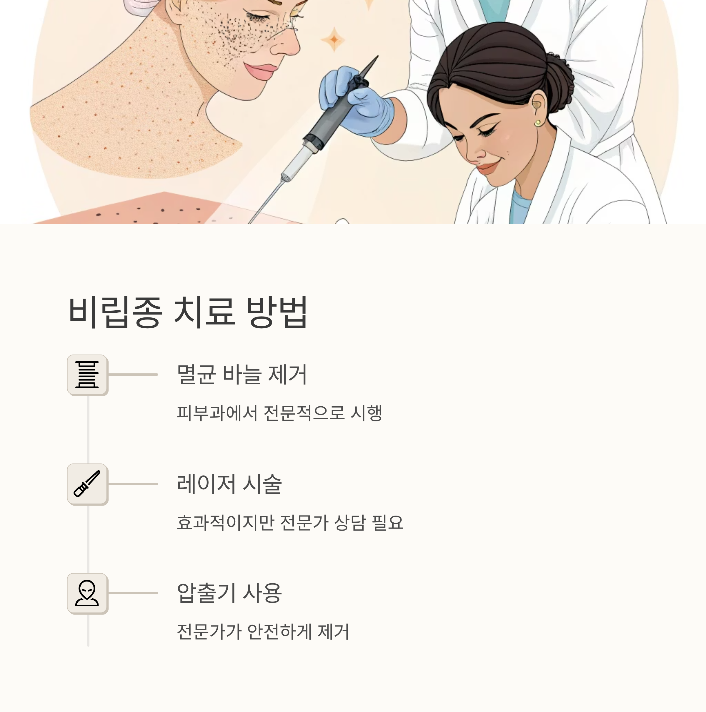 하지만, 무리한 각질 제거는 피부 장벽을 손상시키므로 전문가의 도움을 받는 것이 좋아요. 비립종은 혼자 해결하려고 하기보다 전문가의 도움을 받는 것이 가장 안전하고 효과적인 방법입니다.
