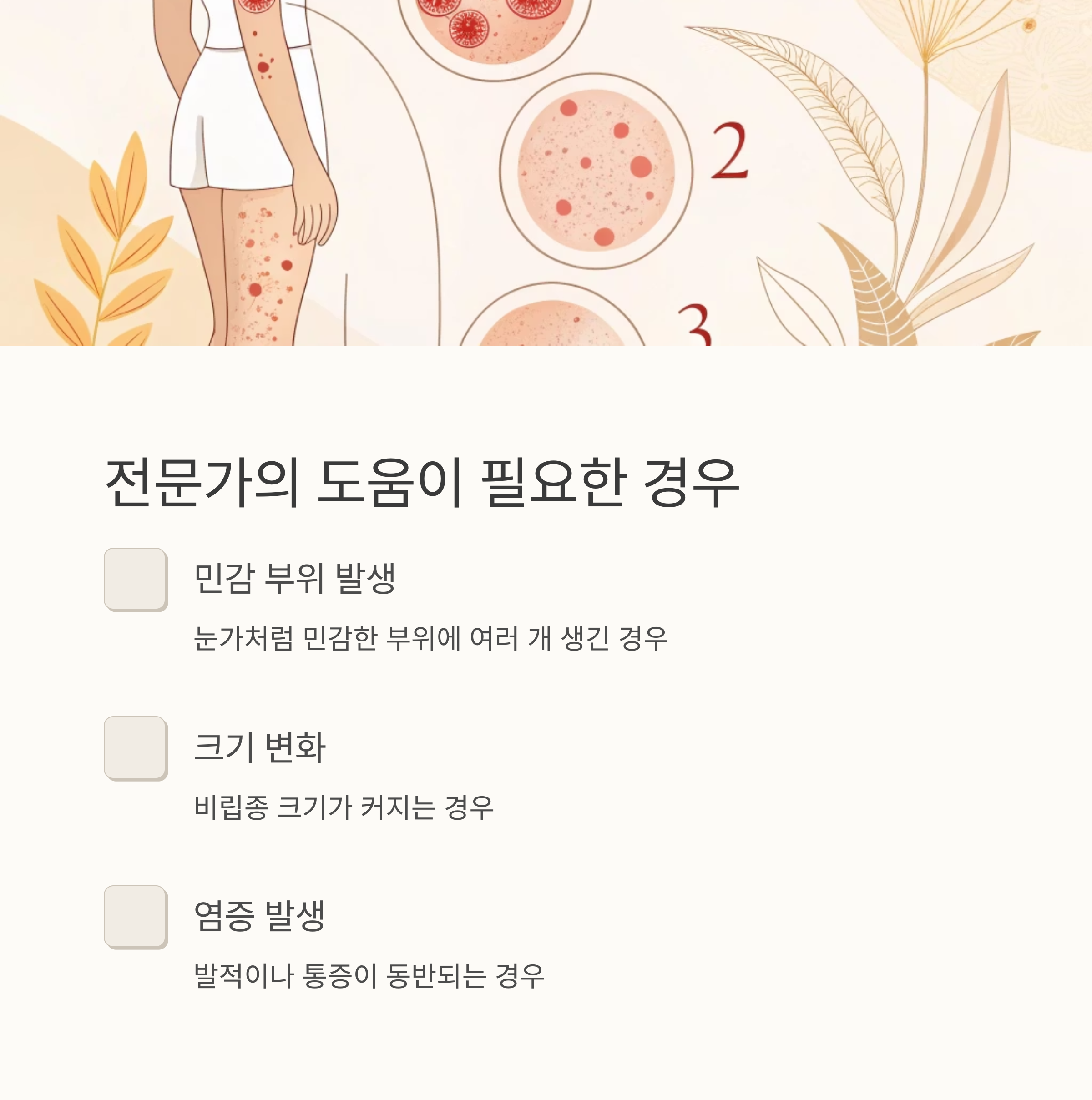 비립종은 단순히 보기 싫은 작은 알갱이가 아니라, 피부 건강을 나타내는 신호일 수 있습니다. 피부 턴오버 저하, 외부 자극, 잘못된 관리 습관 등 다양한 원인이 있으니, 본인의 피부 상태를 정확히 파악하고 적절한 관리와 치료를 받는 것이 중요해요. 무엇보다 중요한 것은 꾸준한 관리와 예방입니다. 오늘부터 꼼꼼한 관리와 생활 습관 개선으로 건강한 피부를 유지하도록 노력해 봐요! 더 궁금한 점이 있으면 언제든지 다시 찾아주세요.
