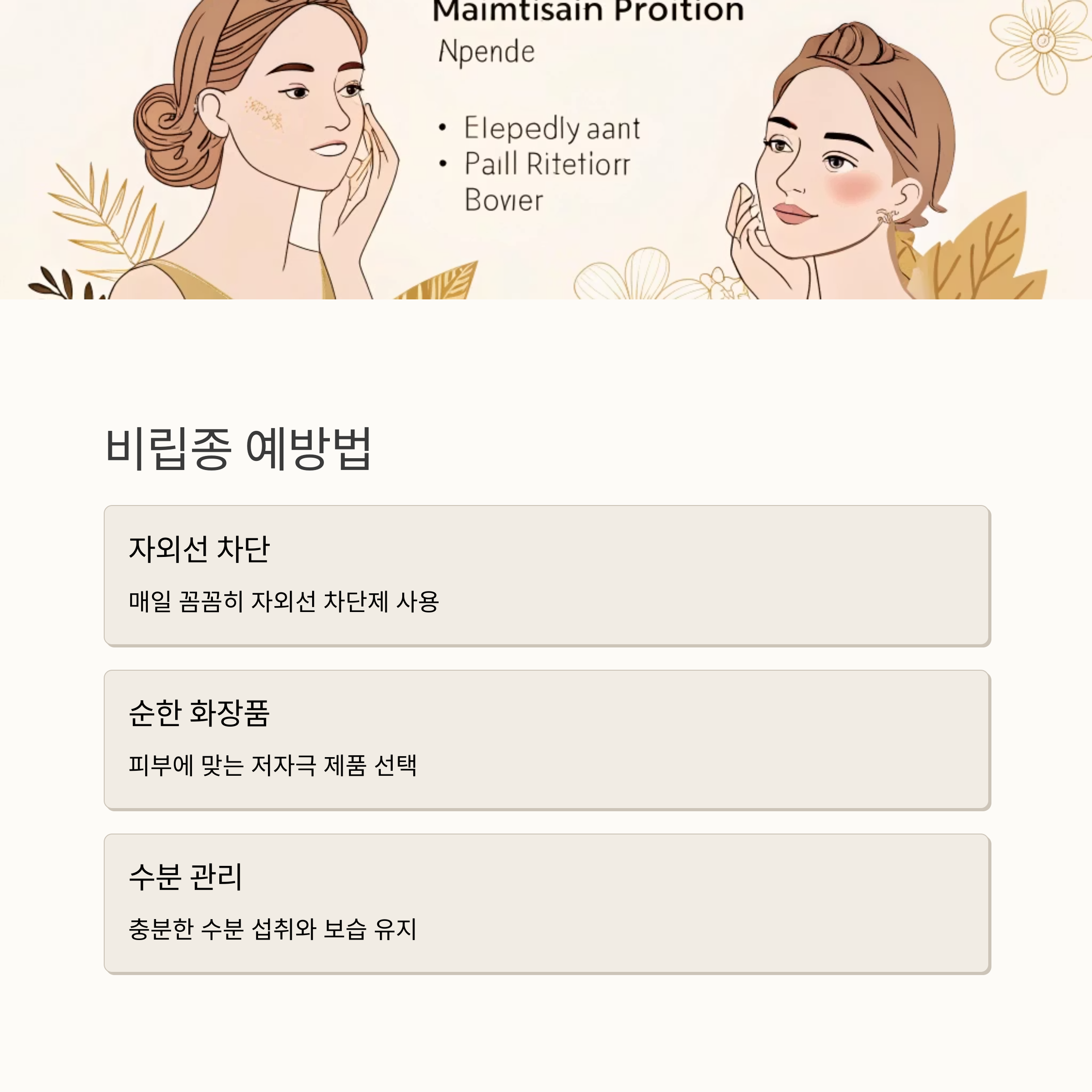 예방을 위해서는 무엇보다 피부에 자극을 주지 않는 것이 중요합니다. 자외선 차단제를 꼼꼼히 바르고, 피부에 맞는 순한 화장품을 사용하고, 충분한 수분 섭취와 규칙적인 생활 습관을 유지하는 것이 중요해요. 그리고 정기적인 피부 관리를 통해 각질 제거를 해주는 것도 효과적이에요.