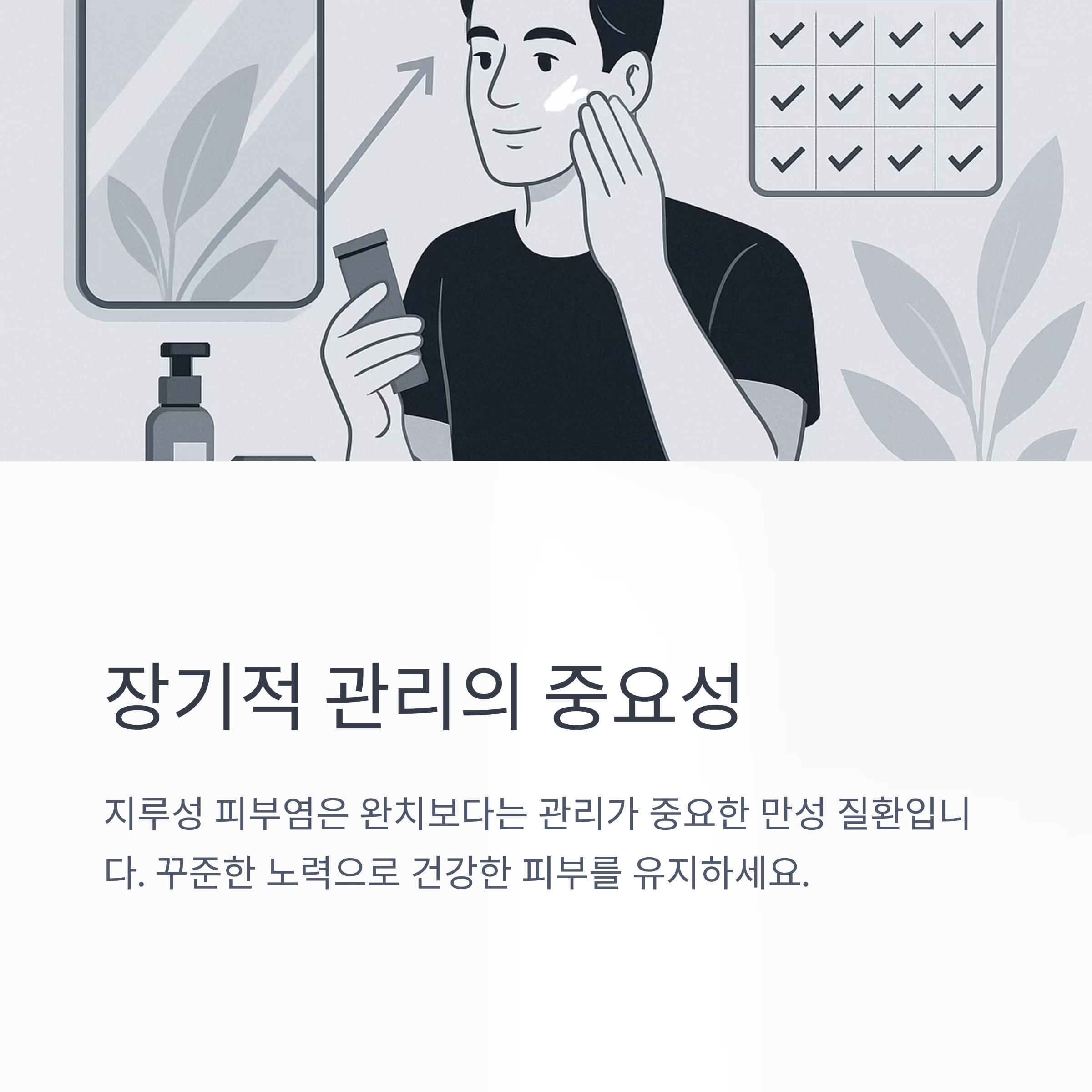 지루성 피부염은 단기간에 완치되기 어려운 만성 질환이에요. 하지만 꾸준히 관리하면 충분히 증상을 호전시키고, 피부 건강을 유지할 수 있어요. 앞서 말씀드린 방법들을 꾸준히 실천하고, 피부 상태를 꼼꼼하게 관찰하면서 필요한 조치를 취하는 것이 중요해요.