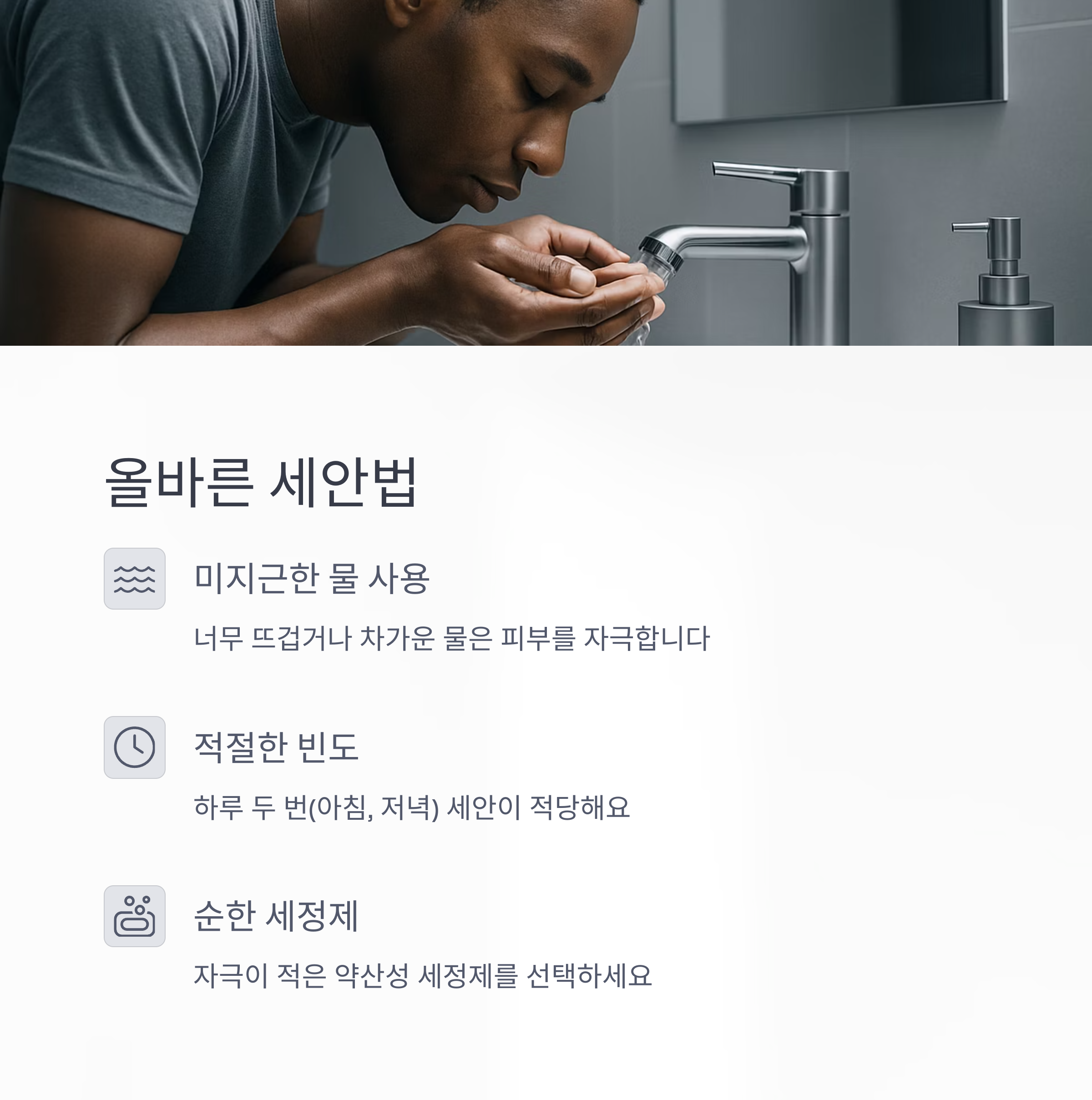지루성 피부염은 피부 장벽이 약해져서 생기는 일종의 염증 반응이에요. 그러니까 가장 먼저 해야 할 일은 바로 피부 장벽을 튼튼하게 만드는 거죠! 세안은 너무 뜨겁거나 차가운 물 대신 미지근한 물로 부드럽게 해주세요. 그리고 너무 자주 세안하지 않는 것도 중요해요.