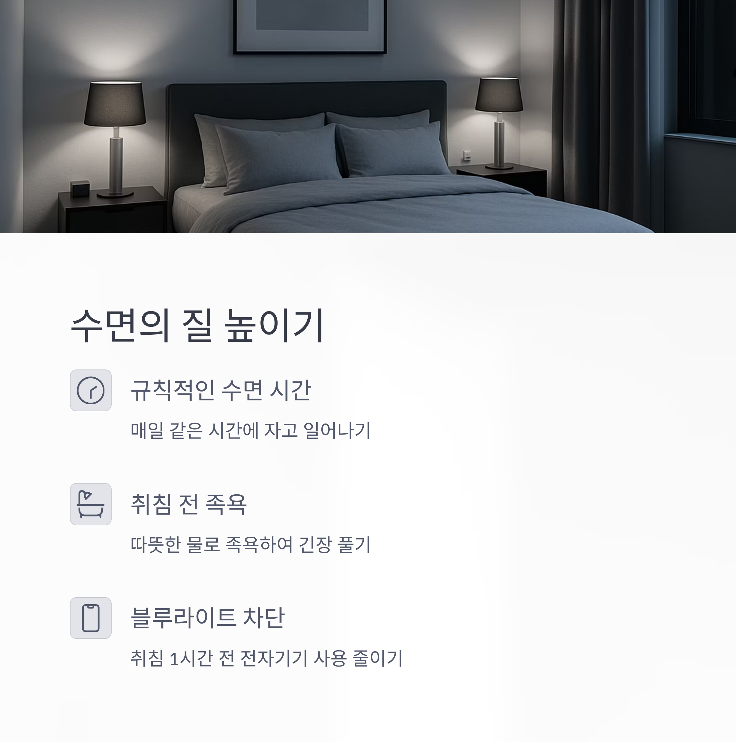 저는 요즘 잠자는 시간을 규칙적으로 하고, 잠자리에 들기 전에 따뜻한 물로 족욕을 하면서 마음을 편안하게 하는 시간을 갖고 있어요. 스트레스는 규칙적인 운동이나 명상을 통해 관리하고 있고요. 그리고 커피나 술, 맵고 자극적인 음식 섭취를 줄이는 것도 도움이 돼요.