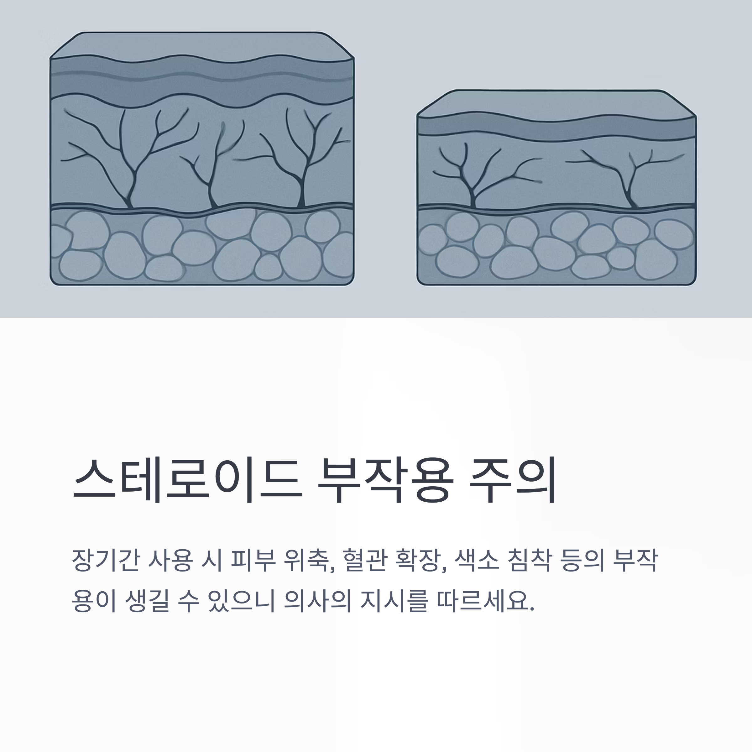 저는 처음에는 스테로이드 연고 사용이 망설여졌지만, 피부과 의사 선생님과 상담 후 사용했고 효과를 보았어요. 하지만 스테로이드 연고는 장기간 사용하면 부작용이 있을 수 있으니, 의사의 지시를 잘 따라야 해요. 전문가의 정확한 진단과 처방은 빠른 회복에 큰 도움이 된다는 걸 잊지 마세요. 자신의 상태에 맞는 치료를 받는 것이 가장 중요해요.
