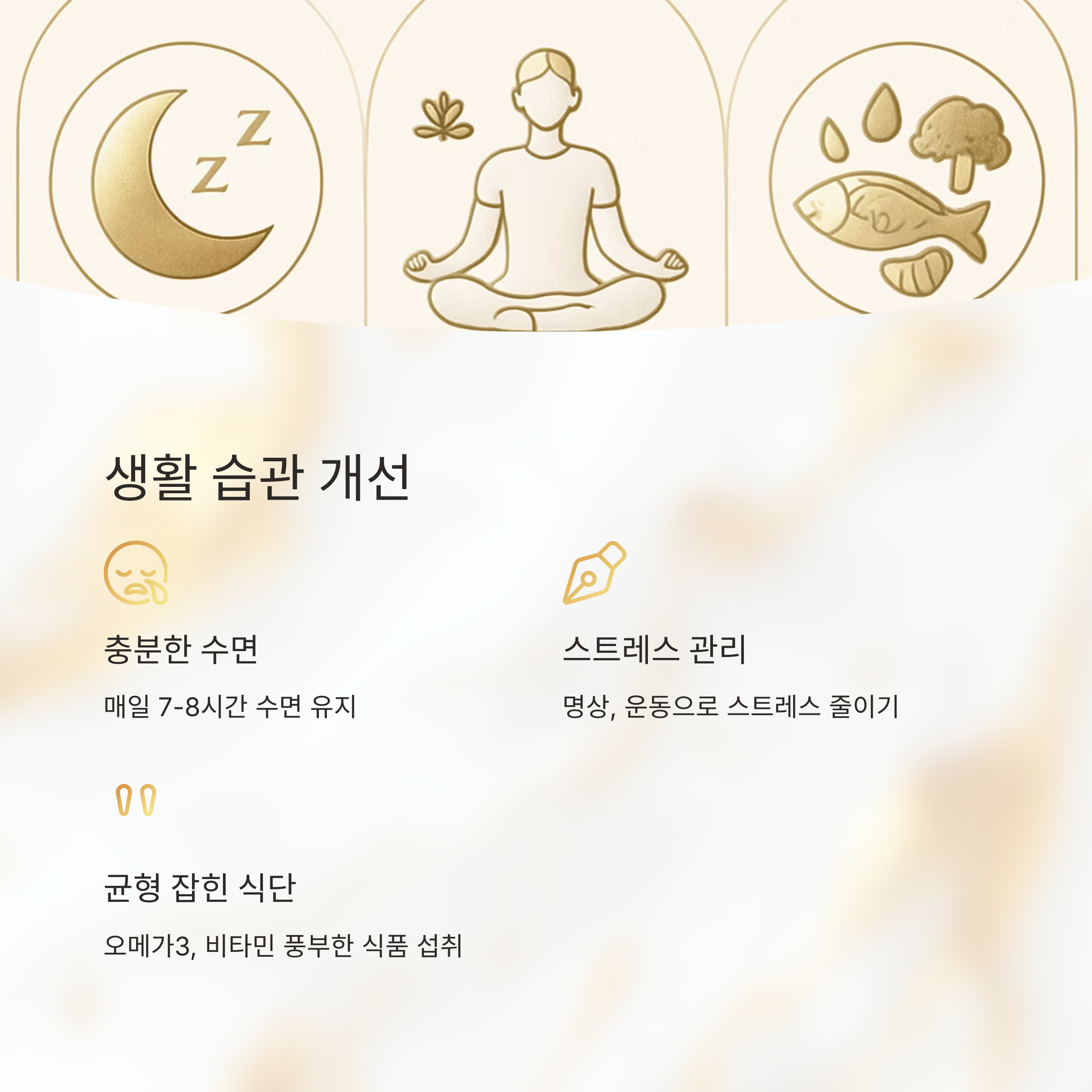 뜨거운 물은 두피를 건조하게 만들어서 오히려 증상을 악화시킬 수 있답니다. 그리고 규칙적인 생활 습관도 빼놓을 수 없어요. 충분한 수면과 스트레스 관리, 균형 잡힌 식단은 두피 건강에 정말 중요해요. 조금만 신경 쓰면 확실히 달라진다는 걸 느낄 수 있을 거예요!