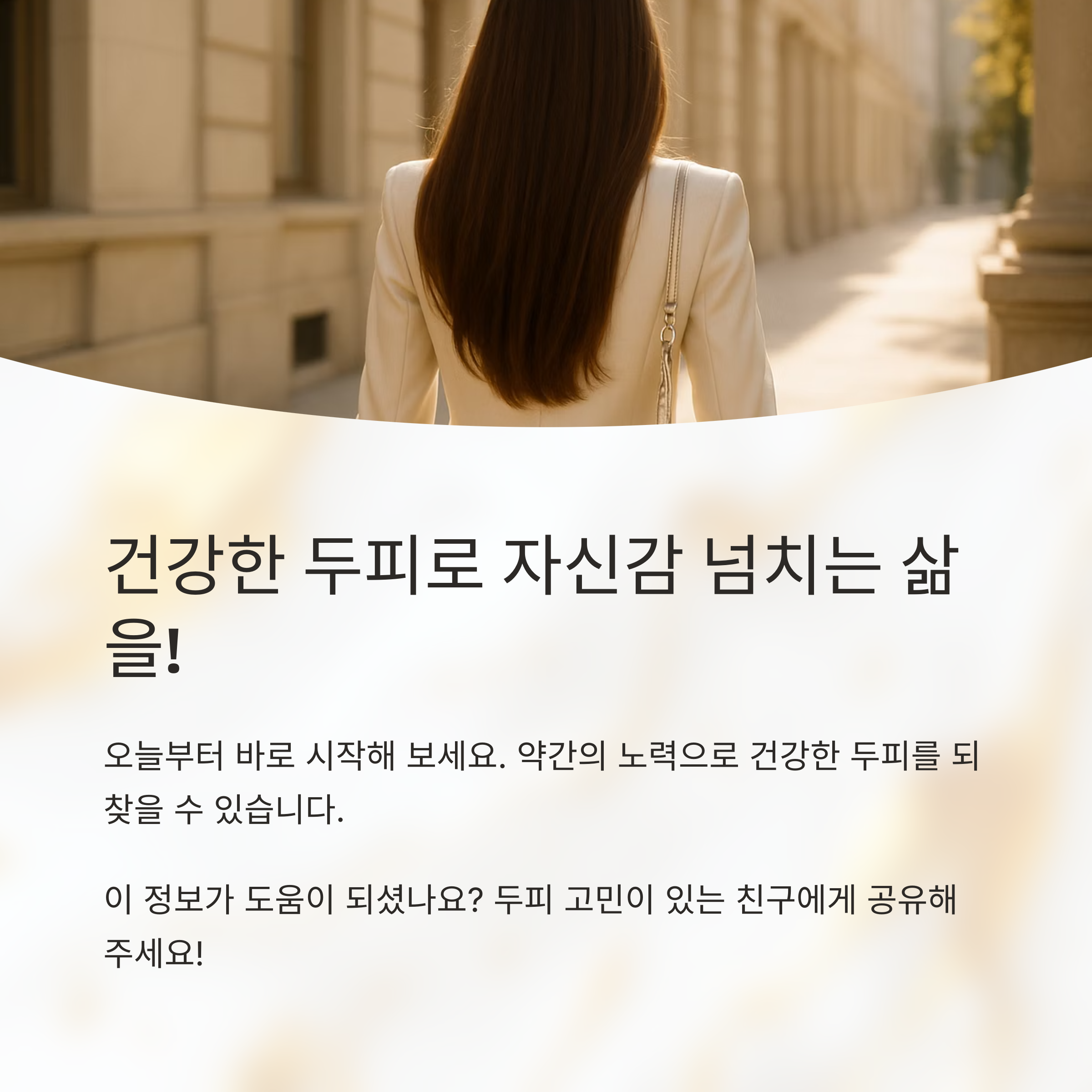 지루성 두피염은 쉽게 낫지 않는 만성 질환이지만, 긍정적인 마음과 꾸준한 노력으로 충분히 관리할 수 있다는 점을 기억하세요. 치료 과정에서 힘들고 지칠 수도 있지만, 스스로에게 너무 엄격하지 말고 긍정적인 마음으로 하나씩 실천해나가면 분명 좋은 결과를 얻을 수 있을 거예요! 우리는 당신의 건강한 두피를 응원합니다.