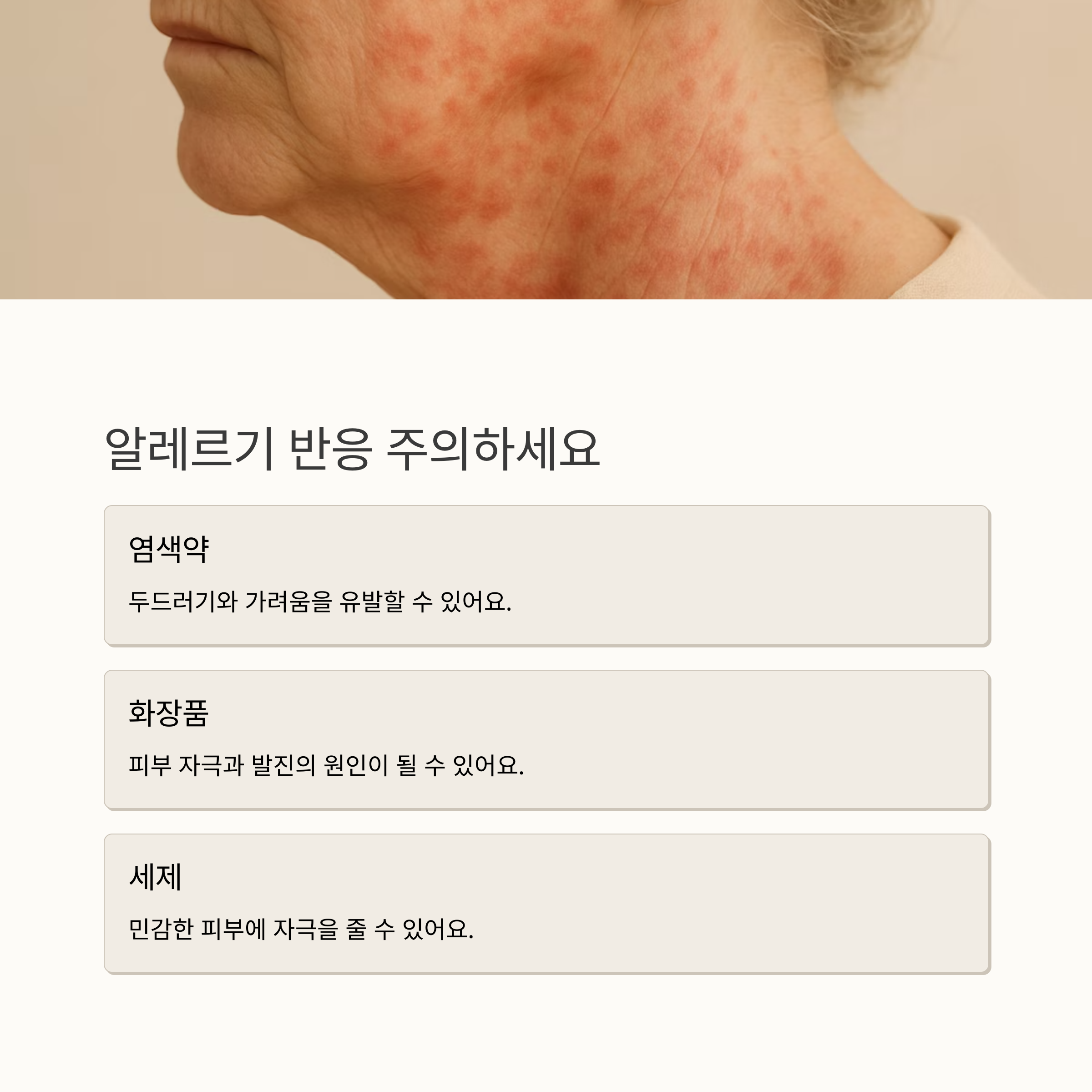 또, 알레르기 반응도 무시 못 해요. 특정 음식이나 화장품, 세제 등에 닿으면 붉은 발진이나 두드러기와 함께 가려움증이 생길 수 있죠. 저는 예전에 염색약 알레르기로 온몸이 두드러기가 난 적이 있는데, 정말 괴로웠어요.