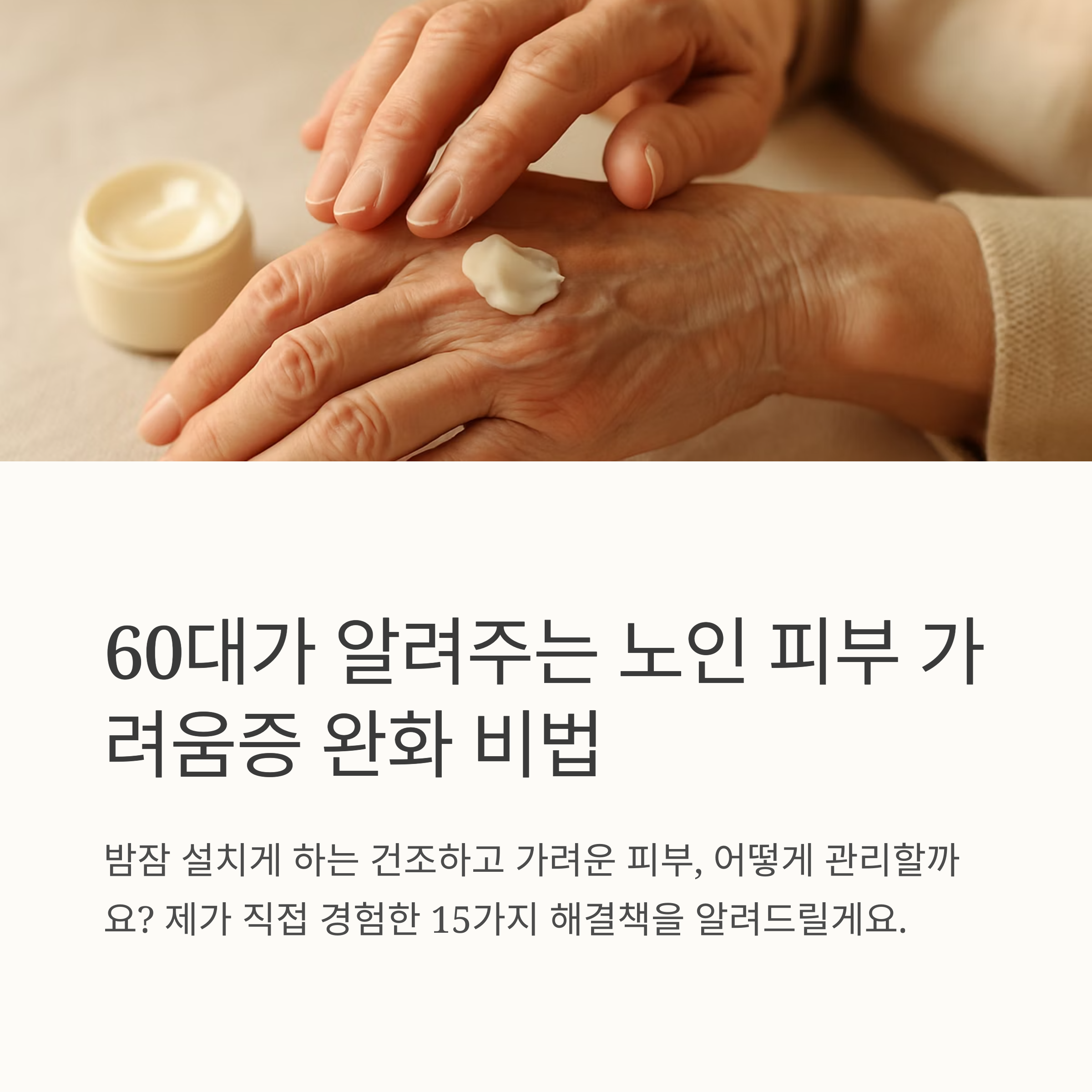 나이 드는 건 어쩔 수 없지만, 건조하고 가려운 피부 때문에 밤잠 설치는 건 싫잖아요. 60대 중반인 제가 직접 경험하고 효과 본 노인 피부 가려움증과 건조증 관리법을 알려드릴게요. 여러분의 편안한 노년을 위한 작은 도움이 되길 바랍니다.