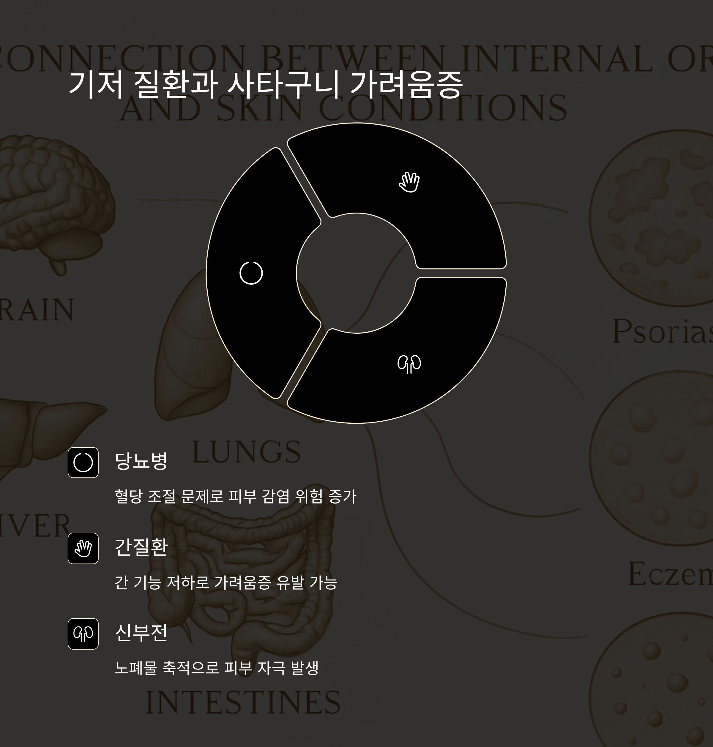 사타구니 가려움증이 단순한 피부 트러블이 아닌, 당뇨병이나 간질환, 신부전과 같은 기저 질환 때문에 생길 수도 있기 때문이에요. 이런 경우에는 원인 질환을 치료해야 가려움증도 함께 해결될 수 있답니다.