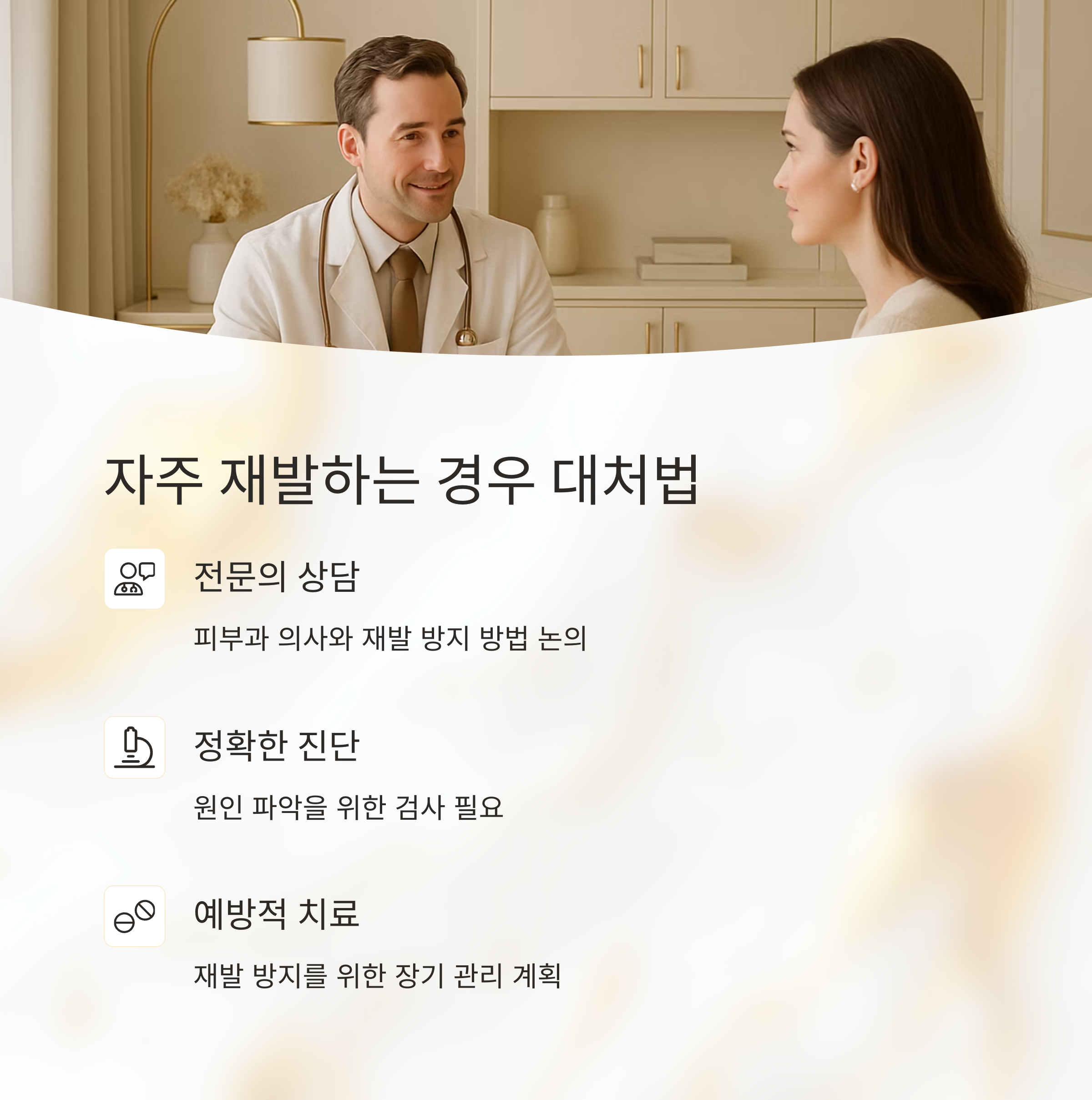 무좀이나 피부염이 자주 재발하는 경우에는 피부과 전문의와 상담하여 재발 방지 방법을 함께 찾아보는 것이 좋아요. 그리고 가려움증이 심하거나 오래 지속된다면, 단순한 피부 문제가 아닌 다른 질병의 신호일 수 있으니 꼭 병원에 가서 정확한 진단을 받으세요. 방치하면 더 심각해질 수 있으니까요!