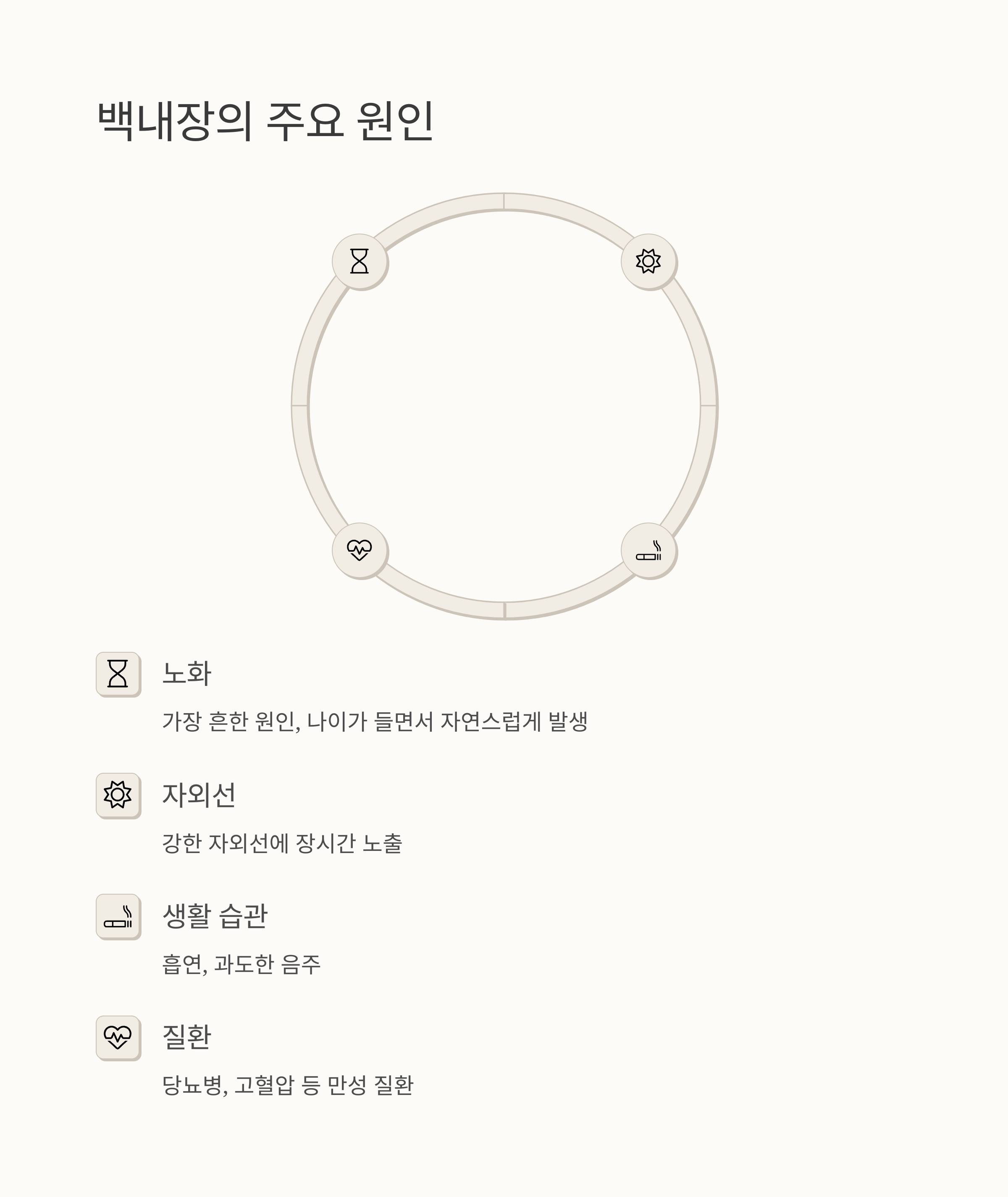 백내장의 가장 큰 원인은 바로 노화입니다. 나이가 들면서 수정체가 자연스럽게 혼탁해지는 거죠. 그러나 노화 외에도 다른 원인들이 있답니다. 강한 자외선에 장시간 노출되거나, 흡연을 하거나, 과도한 음주를 하는 경우에도 백내장이 발생할 확률이 높아진다고 해요. 또한, 당뇨병이나 고혈압과 같은 만성 질환을 앓고 있는 경우에도 백내장이 더 빨리 진행될 수 있다고 합니다.