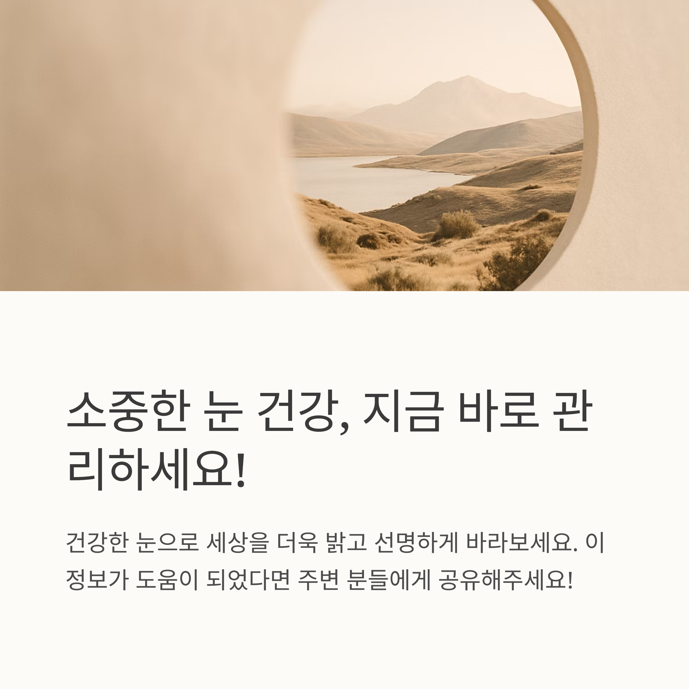 특히 40대 후반부터는 나이와 상관없이 정기적인 안과 검진을 받는 것이 좋습니다. 건강검진처럼 눈 건강도 미리미리 체크하는 게 중요해요. 증상이 없더라도 연 1회 정기 검진을 통해 건강을 유지하는 습관을 들이세요. 평소 꾸준히 건강을 관리하는 습관이 건강한 삶을 유지하는 데 큰 도움이 될 거예요. 소중한 눈을 위해 지금 바로 관심을 가져보세요!