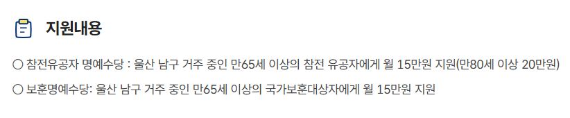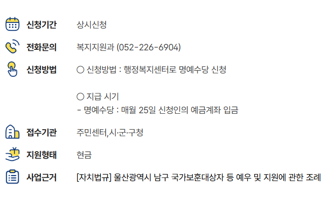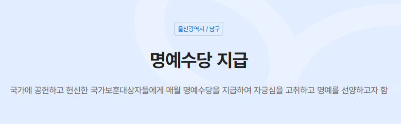1. 울산 남구, 국가유공자 어르신들을 위한 명예수당 지원 사업 안내